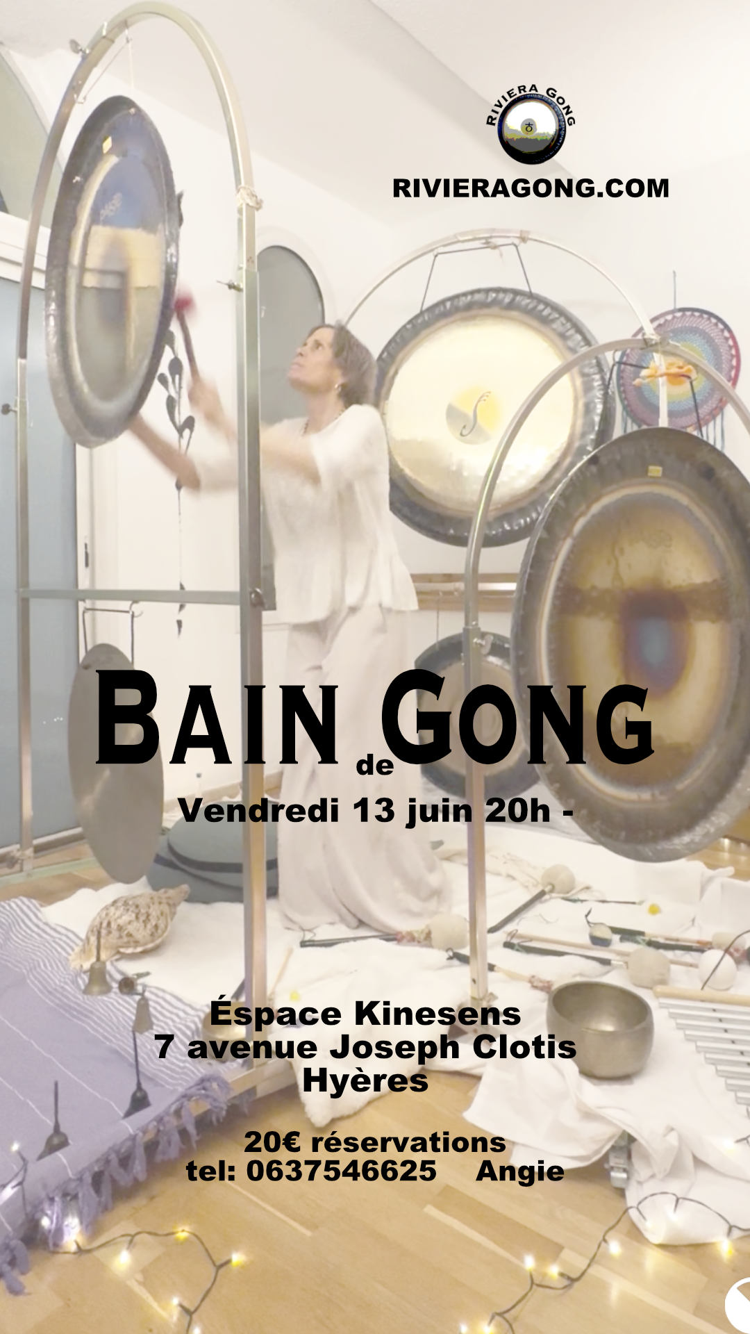 - Vendredi 13 juin à 20h chez Kinésens : Bain de Gong – 20 € la place (s’il en reste).